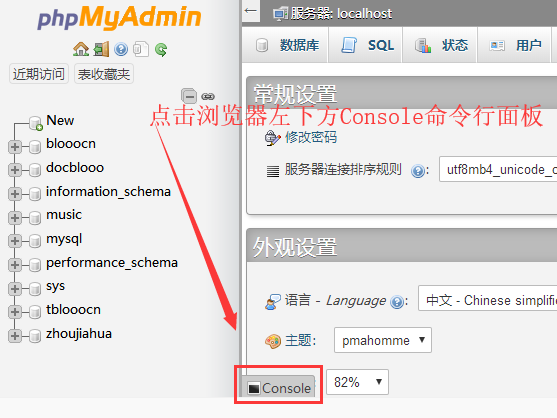 (2)使用phpMyadmin控制台执行mysql数据库命令
